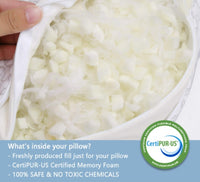 Filled with shape-retaining plush, health conscious memory foam that you can adjust your pillow's height to low, medium or high - contouring to perfectly fit your upper body, neckline, and shoulders, improving in personalized comfort nightly.